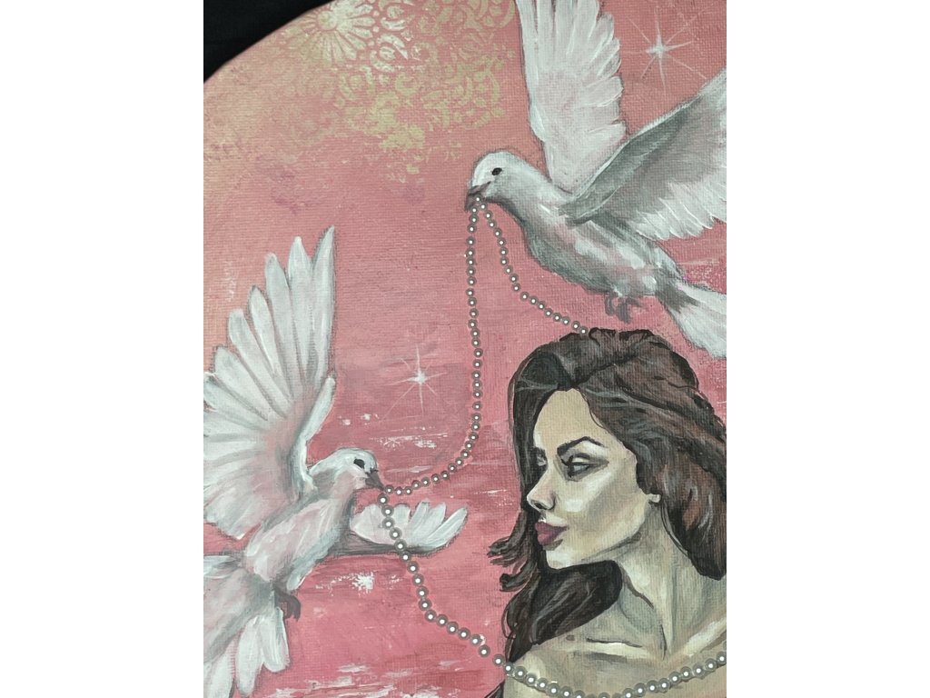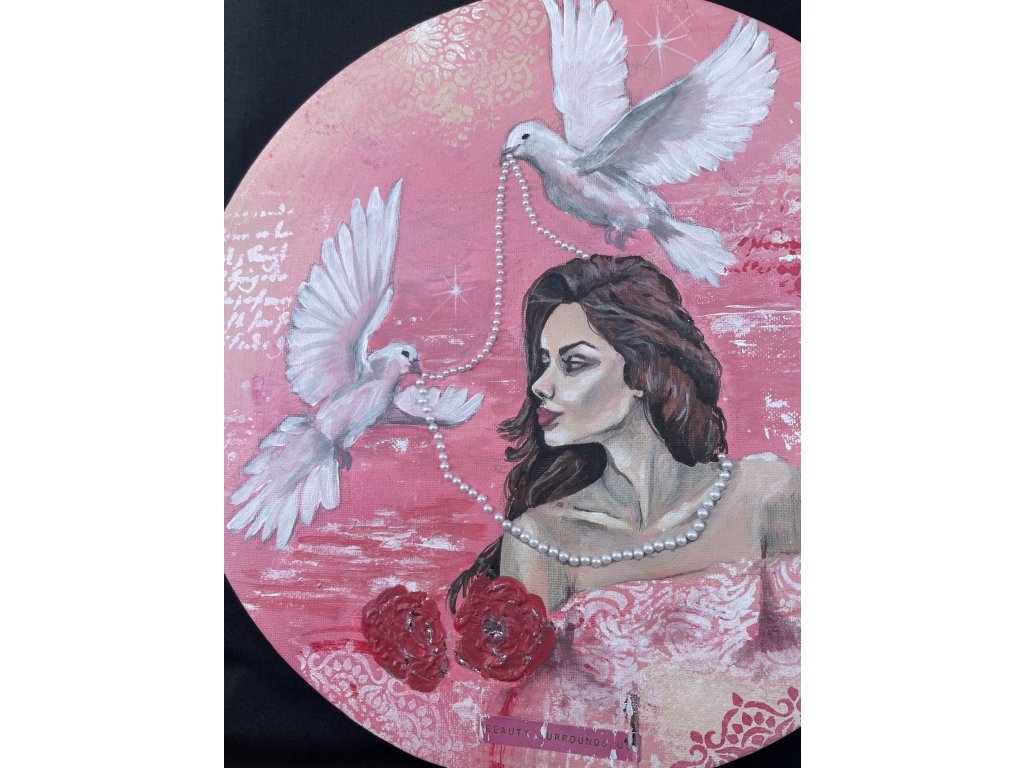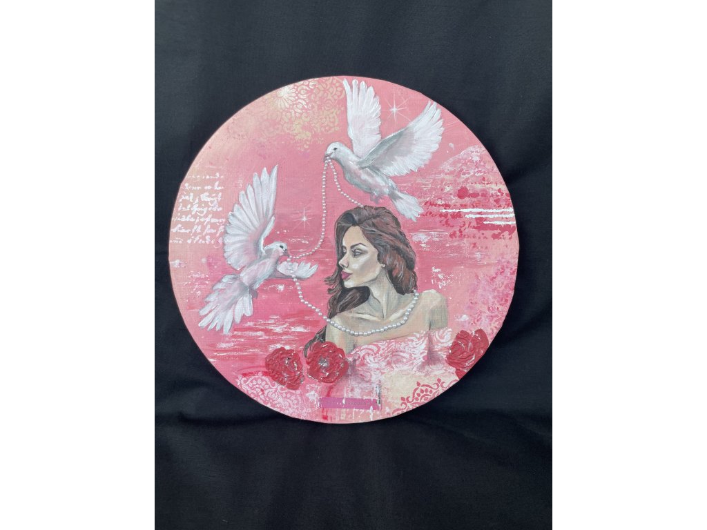 Tento jedinečný autorský kruhový obraz zachycuje jemnou ženskou krásu a má propojovat, občas možná paradoxní, spojení něhy a luxusu.